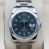 This is a 40mm large model that has a steel bracelet with SmartLink adjustment system, 7-sided crown with synthetic faceted blue spinel, a stunning white dial, roman numeral hour markers, a date window at 6 o’clock and polished steel sword-shaped hands.