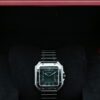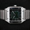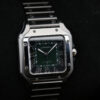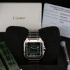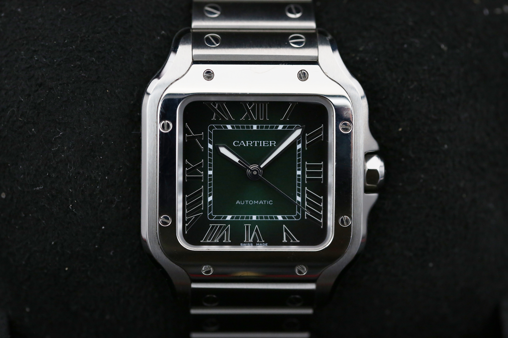 The Santos also offers the option of a second strap in green alligator skin with interchangeable steel folding buckle.