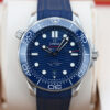 This is a 42mm model that comes on a high quality blue rubber strap, is crafted from stainless steel and includes a blue ceramic bezel with a white enamel diving scale. The dial is also polished blue ceramic and features laser-engraved waves and a date window at 6 o’clock.