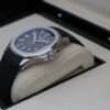 In addition to that, below the sapphire crystal glass is a stunning horizontally embossed black dial with luminescent hands.