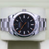 The watch features a stunning black dial, a smooth bezel and the iconic and unique orange lightning bolt hand.