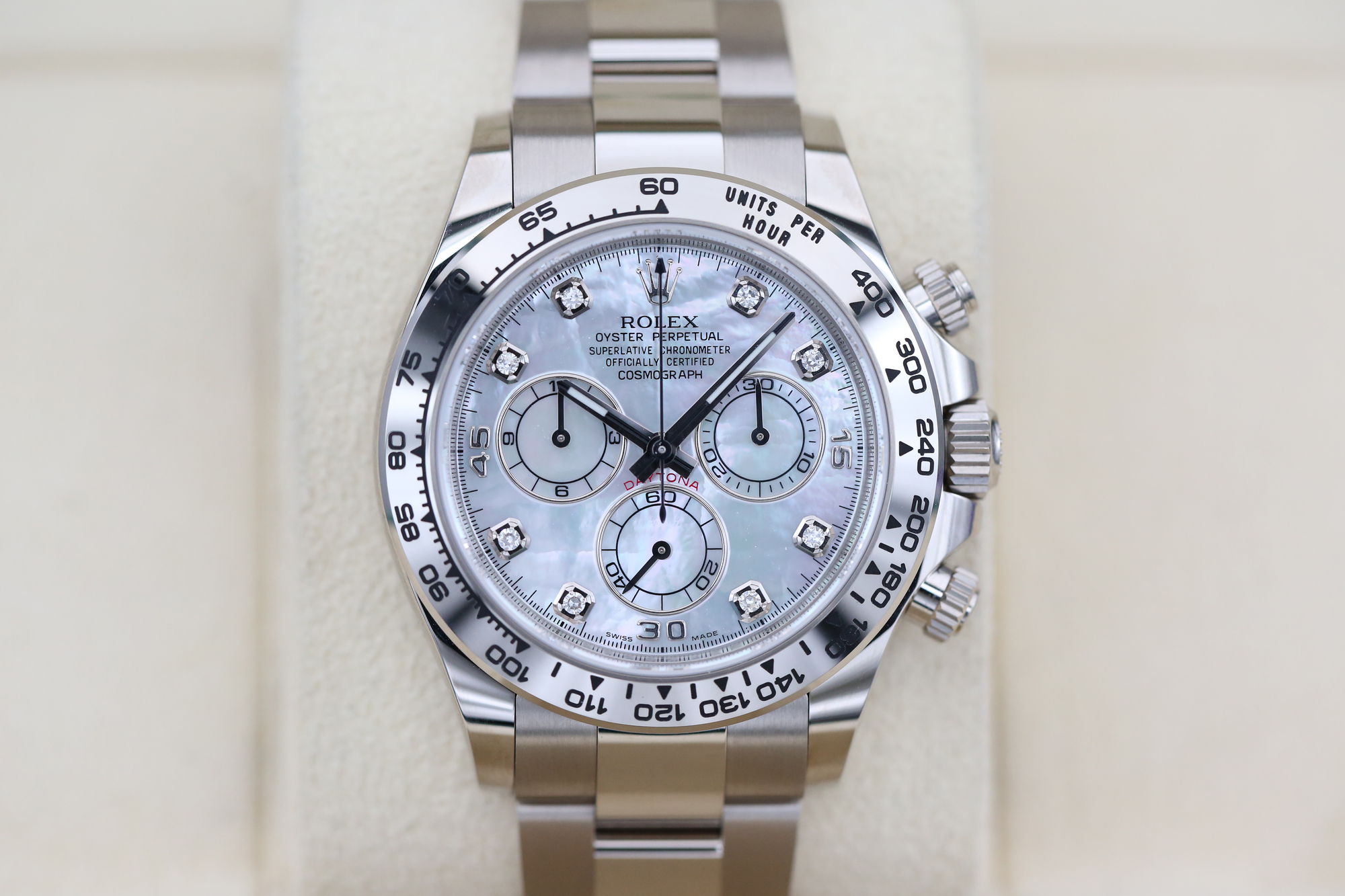 Here we have the Rolex Daytona Cosmograph- Mother of Pearl Diamond