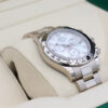 This is a 18ct white gold 40mm model that comes on the famous oyster bracelet with a stylish mother of pearl dial, diamond hour markers and an 18ct white gold bezel.