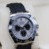 The watch boasts an 18ct white gold case, a stunning silver dial, 18ct white gold detail on the hour markers and contrasting black sub-dials.