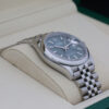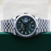 The watch features a stunning mint green dial, a date window at 3 o’clock and a smooth oystersteel bezel.