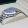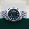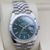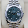 This watch features a stunning mint green dial, contrasting white index hour markers, a date window at 3 o’clock and a smooth oystersteel bezel.