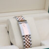 The watch is a beautiful combination of rose gold and oystersteel that features a stylish chocolate dial with a sunray finish that is obtained using masterful brushing techniques to create a characteristic subtle glow that moves depending on the position of the wrist.