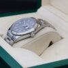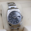 The watch is a combination of white gold and oystersteel that features a stylish rhodium dial, contrasting white index hour markers, date window at 3 o’clock and an 18ct white gold fluted bezel.