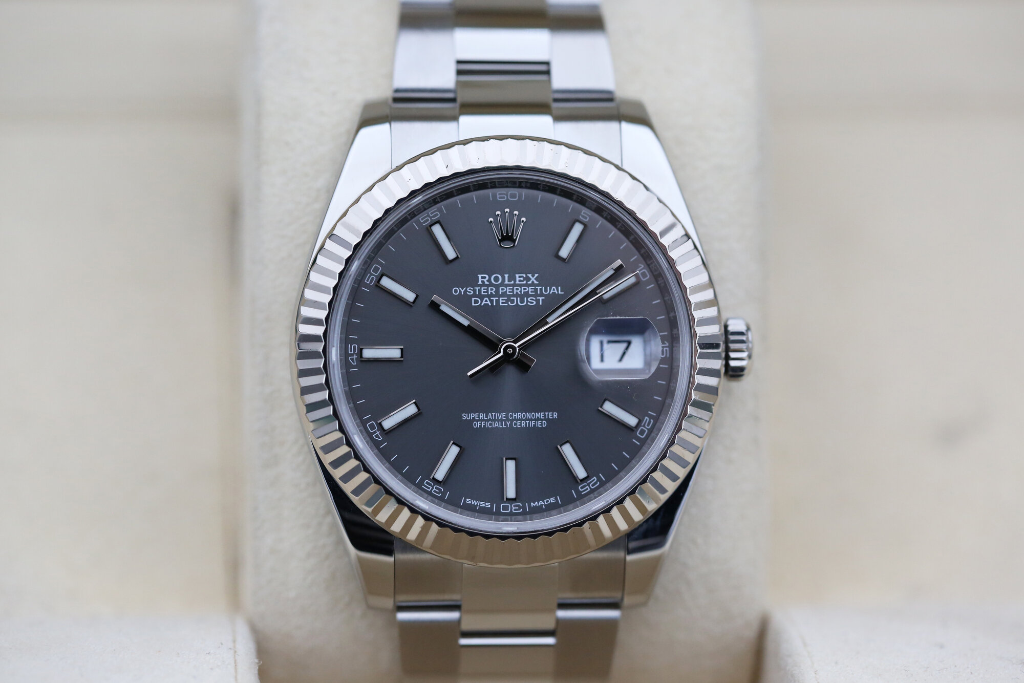Here we have the Rolex Datejust– Rhodium