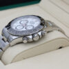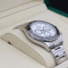 The watch boasts a stunning white dial, 18ct white gold detail on the hour markers and contrasting black trimmed sub-dials, this colour combination is affectionately known in the industry as “The Panda”.