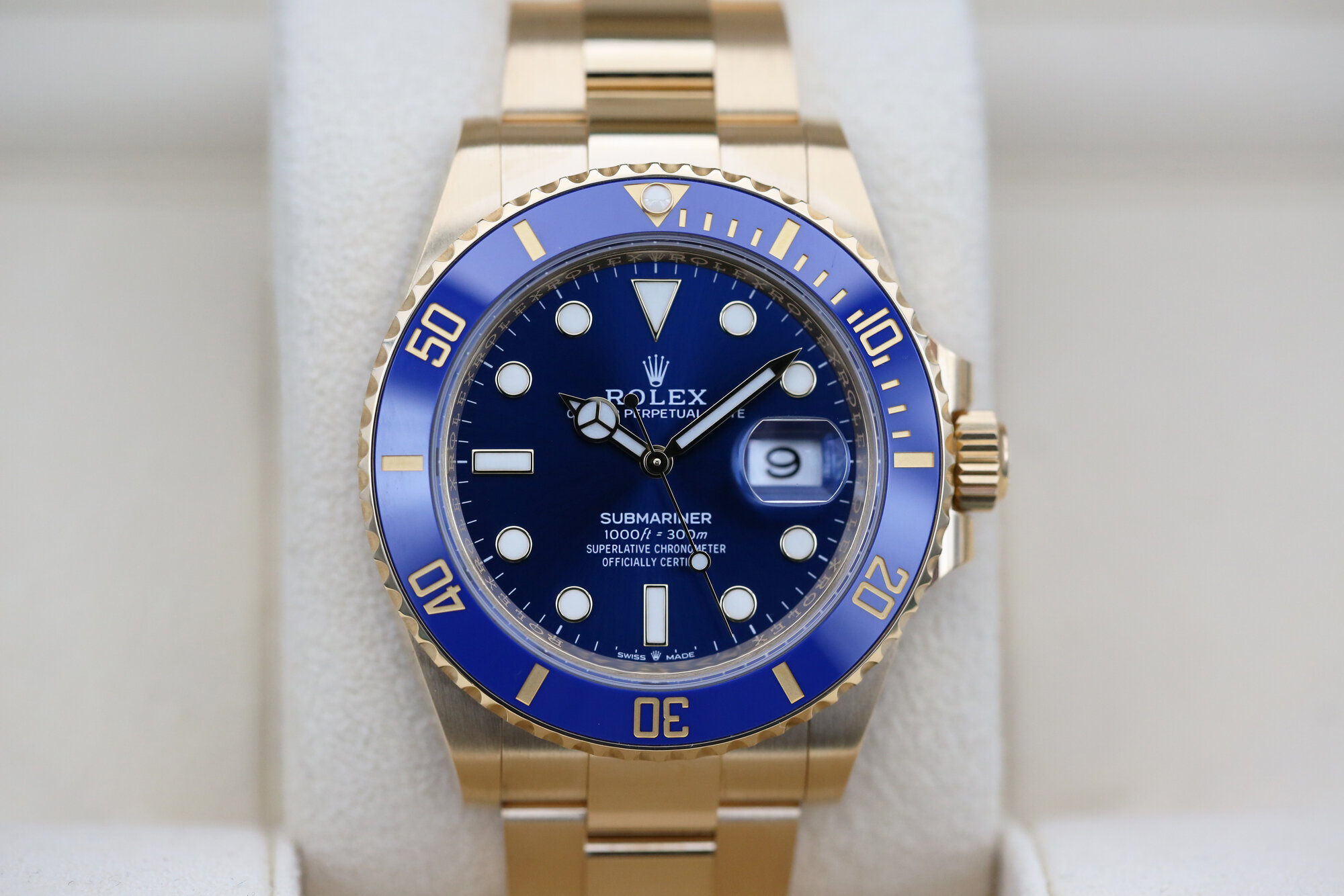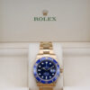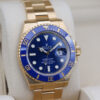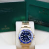 This beautiful watch is crafted entirely from 18ct gold and features a stunning royal blue dial, date window at 3 o’clock and a cerachrom bezel with a blue ceramic insert this colour combination is affectionately known in the industry as “The Bluesy Sub”.
