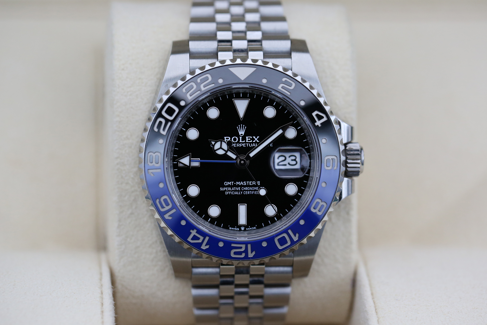 This watch features a stylish black dial and a cerachrom bezel with blue and black ceramic insert, this colour combination on the jubilee bracelet is affectionately known in the industry as “The Batgirl”.
