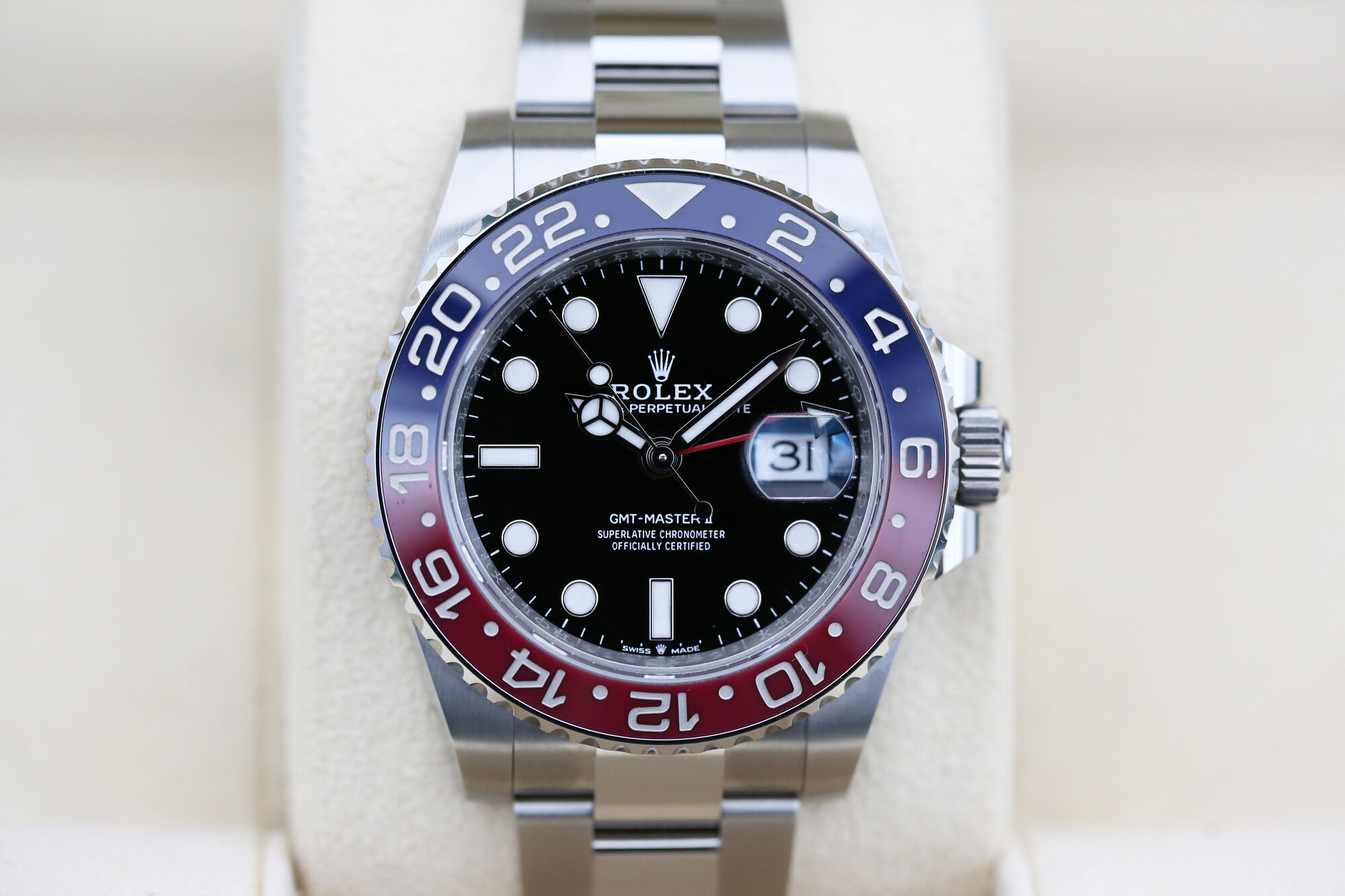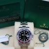This watch features a stylish black dial and a cerachrom bezel with blue and red ceramic insert, this colour combination is affectionately known in the industry as “The Pepsi”.