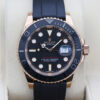 On this special version of the watch, the crown and crown guard are on the left side of the case and the date aperture and the cyclops lens are at 9 o’clock.