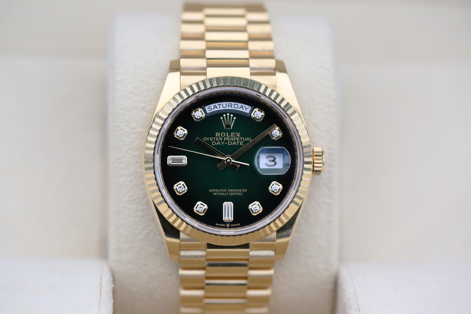 Here we have the Rolex Day-Date – Green Ombre Diamond