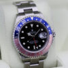 This watch features a stylish black dial and an aluminium bezel with blue and red insert, this colour combination is affectionately known in the industry as “The Pepsi”.