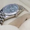 THE WATCH COMES WITH THE PRESIDENTAL BRACELET. WHICH IS POSSIBLY THE MOST RECOGNISABLE BRECELET IN THE WORLD. THE DAY DATE MODEL WAS FIRST INTRODCUED BY ROLEX IN 1956. THE DAYDATE 40 COMES WITH THE 3255 SELF WINDING MOVEMENT, THIS WATCH COMES COMPLETE WITH ORIGINAL BOX, OUTTER BOX, LEATHER WALLET, SERVICE BOOKLET, INSTRUCTION BOOKLET, GREEN TAG AND ORIGINAL ROLEX WARRANTY CARD.