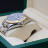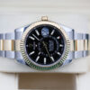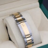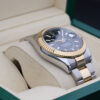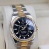 This watch boasts a stylish black dial, fluted bezel and is a beautiful combination of 18ct gold and oystersteel.
