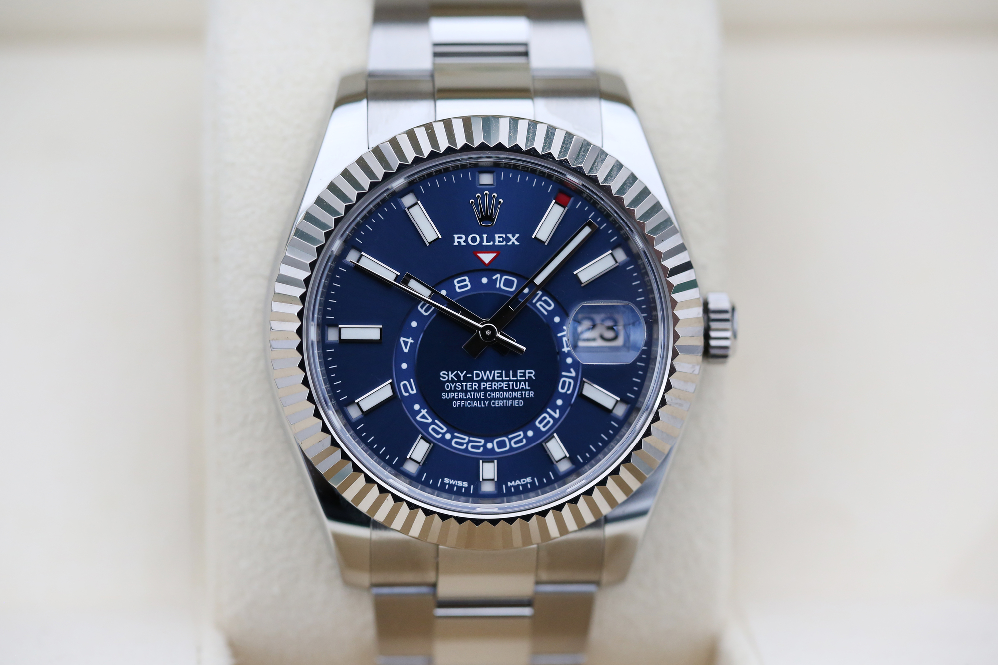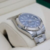 This is a 42mm model and comes on the famous oyster bracelet, it boasts a stunning blue dial and a 18ct white gold fluted bezel.