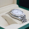 This is a 42mm model and comes on the famous jubilee bracelet, it boasts a stunning white dial and a 18ct white gold fluted bezel.