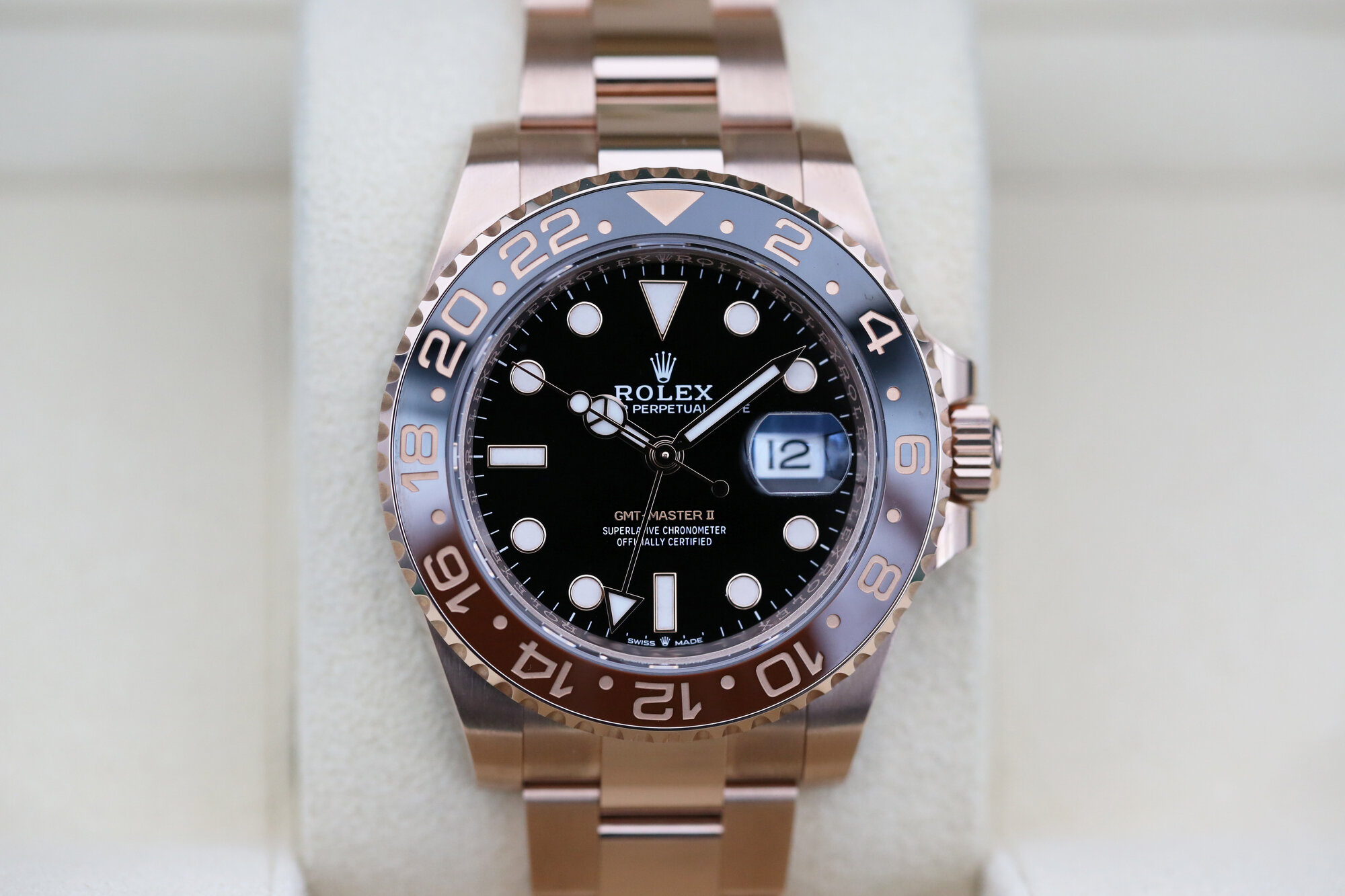 Here we have the Rolex GMT-Master II– Full Rose Gold Root Beer