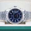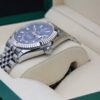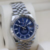 This is a 42mm model and comes on the famous jubilee bracelet, it boasts a stunning blue dial and a 18ct white gold fluted bezel.