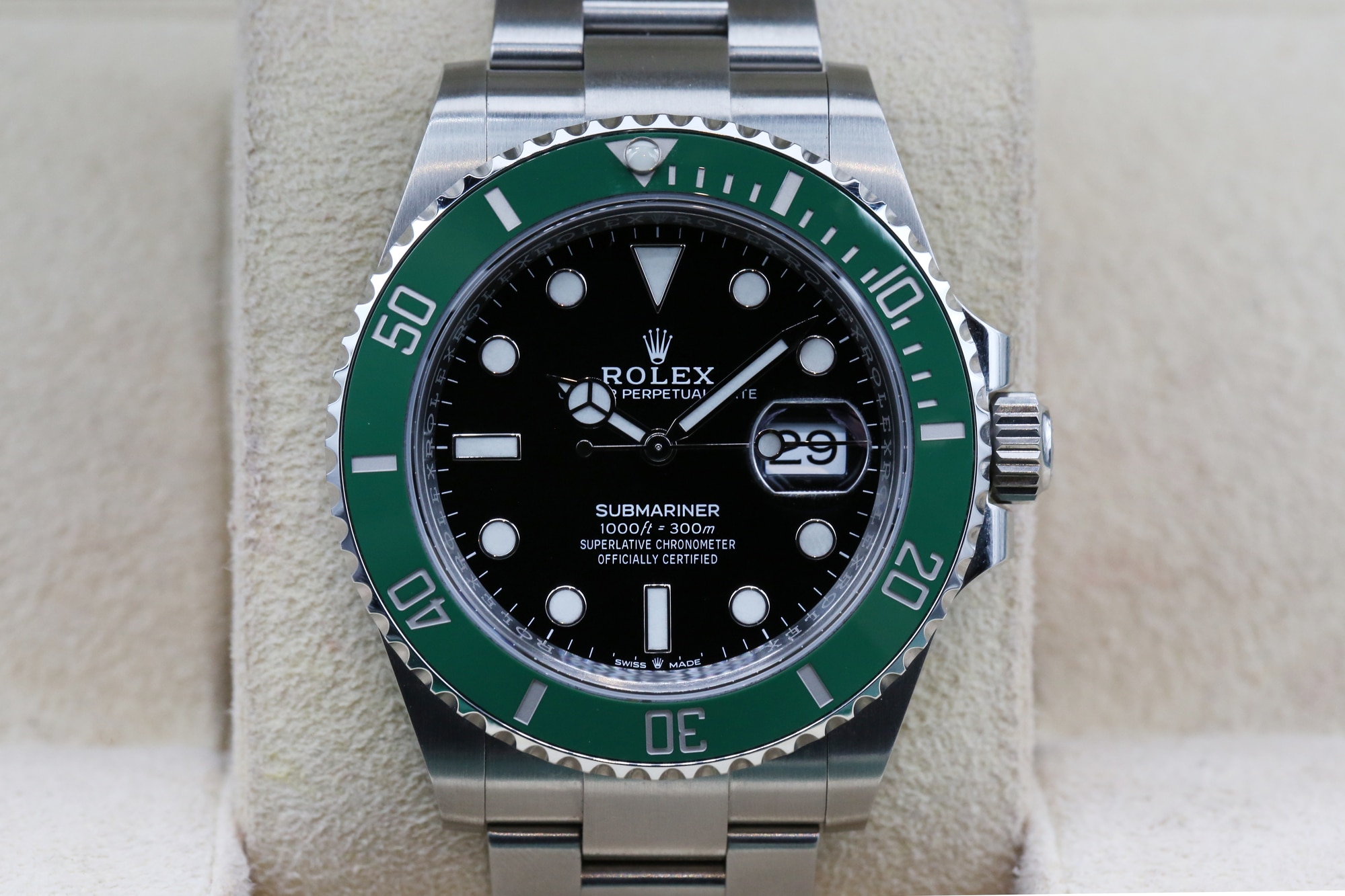 THIS WATCH COMES COMPLETE WITH ORIGINAL BOX, OUTTER BOX, LEATHER WALLET, SERVICE BOOKLET, INSTRUCTION BOOKLET, BOTH GREEN & WHITE SWING TAGS AND ORIGINAL ROLEX WARRANTY CARD.