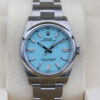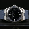 This is a 40mm model that has a stunning sunburst satin finished lacquered blue dial, date window at 3 o’clock and a stainless steel case and bezel.